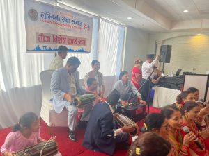 लुम्बिनी सेवा समाजका अध्यक्ष जगदिश प्रसाद न्यौपानेले नेपालको लुम्बिनी क्षेत्र साँस्कृतिक रुपमा धनी भएकाले सँस्थाले हरेक चाडपर्बहरुलाई लुम्बिनी प्रदेशको झल्को दिने गरि आयोजना गर्दै आएको बताउनु भयो ।