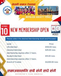 साधारण सभाले पूर्ब अध्यक्ष दिनेश शर्माको अध्यक्षतामा सदस्यता बितरण समिति पनि गठन गर्नुका साथै सदस्यता बितरण अभियान शुरु गर्ने निर्णय समेत गरेको छ । नयाँ सदस्यता लिनको लागि सँस्थाको वेवसाईट www.ournst.org मा गएर साधारण, आजिवन सदस्यताको लागि आबेदन दिन नेपाली समाज टेक्सासले सबै नेपाली समुदायलाई आग्रह गरेको छ।
