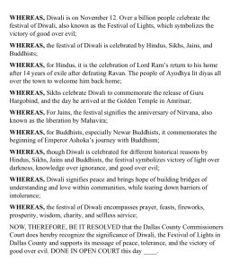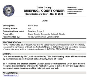 टेक्सासको ड्यालस काउन्टीद्वारा दिपावली पर्बलाई मान्यता प्रदान
