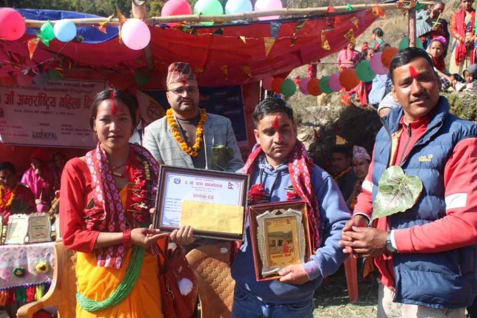 डोटीको जोरायल गाउँ पालिका वडा नं. ६ मा बिस बर्ष उमेर पूरा भएपछि विवाह गर्ने एक जोडी सम्मानित भएका छन । यस बर्षको ११४ औँ अन्तराष्ट्रिय नारी दिवसको अवसर पारी २० बर्ष उमेर पुगेपछि विवाह गर्ने दम्पतिलाई शुक्रबार निरौलीको खसरेमा आयोजना गरिएको एक कार्यक्रममा सम्मानित गरिएको हो ।