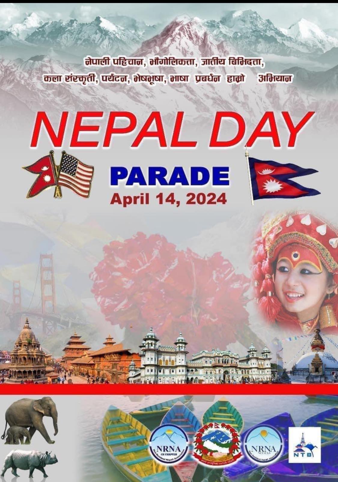 नेपाल महोत्सब (नेपाल डे परेड) को दिन अप्रिल १४ मा क्यालिफोर्नियाको सानफ्रान्सिस्को शहरमा बिभिन्न झाँकी सहितको परेड प्रदर्शन, बिभिन्न साँस्कृतिक कार्यक्रम, नेपाली कला सँस्कृति तथा पर्यटकीय स्थलको जानकारीमूलक सामग्रीको प्रदर्शन लगायतका कार्यक्रम आयोजना गरिने छन ।
