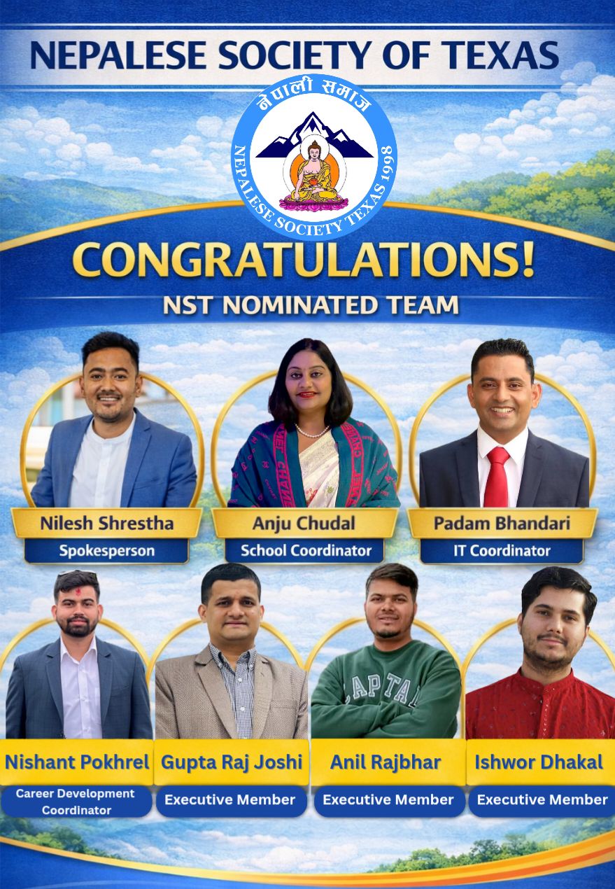 यस्तै, निशान्त पोखरेललाई करियर विकास संयोजक पदमा मनोनयन गरिएको नेपाली समाज टेक्ससले जनाएको छ।