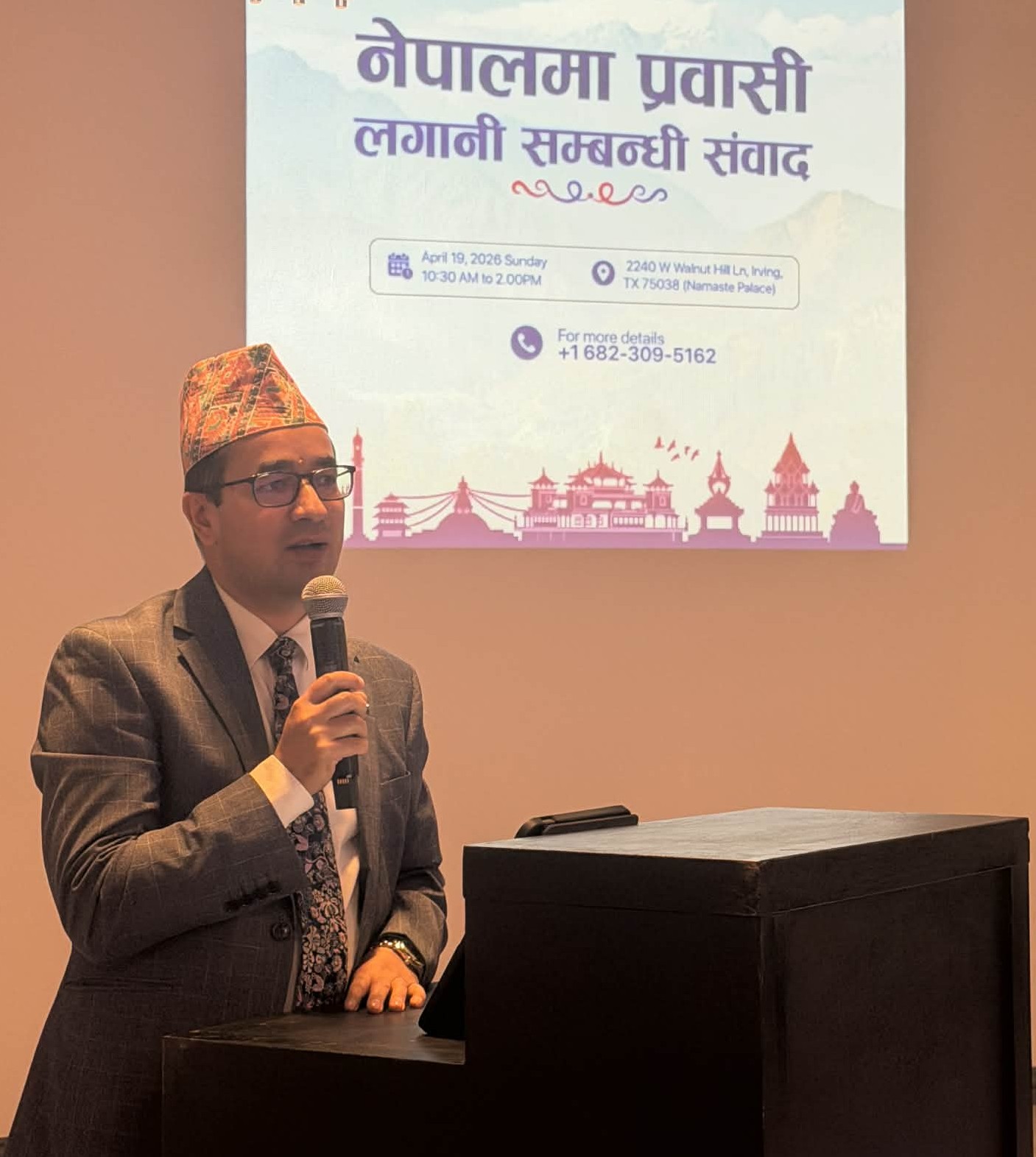 यसैगरी, ड्यालसस्थित महावाणिज्यदूत सुरेश अधिकारीले सरकारले डायस्पोराको ज्ञान, सीप र लगानीलाई विकास प्रक्रियासँग जोड्ने नीति अघि सारेको उल्लेख गर्दै नेपालको विकासका लागि डायस्पोराको लगानी अपरिहार्य रहेको बताए ।